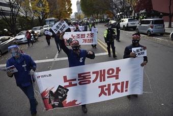 전태일 50주기를 맞아 청년들이 현재의 대학생은 ‘노동자의 친구가 아니라, 착취 받는 노동자 그 자체’라며 노동개악 저지에 입을 모았다. 이날 ...