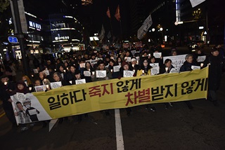 전태일 50주기 당일 진행된 비정규직 노동자들의 결의대회에서 집회 대오와 경찰 간 충돌이 발생했다. 대회에는 특수고용, 비정규직 노동자들을 비롯...