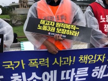 전교조 해고자들은 34명으로 박근혜 정부 교육부의 전임자 현장 복귀 명령을 거부해 직권면직됐다. 전교조 해고자들은 9일 오후 청와대 분수대 앞에...
