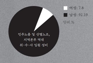 민주노총을 비롯해, (여성 연맹을 제외한) 15개 산별연맹, 그리고 16개 지역본부 에서 직선으로 선출된 역대 임원들의 성비를 분석했다. 어렴풋...