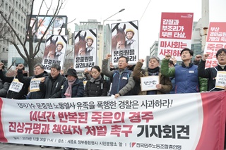 민주노총이 마사회 고 문중원 열사에 대한 문재인 정부의 책임을 규탄하고 나섰다. 이들은 30일 오전 11시 정부서울청사 앞에 설치한 고 문중원 ...