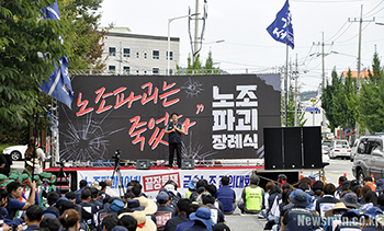 집회를 시작하며 자회사 새노조 조합원들이 어색한 팔뚝질을 하며 ‘임을 위한 행진곡’을 부르자 농성 중인 노동자들이 이야기한다. 자회사 노동자들이...
