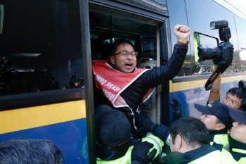 노동법 개악 저지를 위한 민주노총의 대국회투쟁 2일 차, 민주노총 임원과 조합원 등 8명이 국회에 진입해 본청 앞에서 연좌 농성을 벌이다 모두 ...