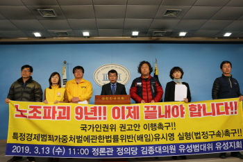 유성기업 유시영 회장이 노조법 위반, 특가법 위반(배임)으로 재판을 받는 가운데, 금속노조와 정의당 등이 유 회장의 법정구속을 주장했다. 천안지...