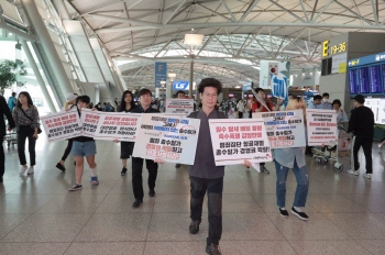 사회변혁노동자당(변혁당)이 19일 오전 11시경 인천국제공항 내에서 항공 재벌 총수 일가의 경영권 박탈을 요구하며 기습시위를 벌였다. 변혁당 당...