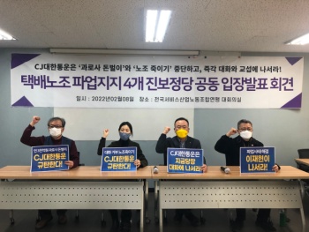 노동당, 녹색당, 정의당, 진보당 4개 진보정당은 8일 오전 서울 서대문구 서비스연맹 대회의실에서 기자회견을 열고 택배노조의 파업을 지지한다고 ...