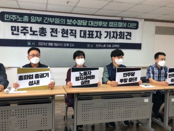 민주노총 전직 간부들이 줄줄이 더불어민주당 대선후보 캠프에 이름을 올리자, 민주노총 전·현직 대표자들이 이를 거세게 비판하고 나섰다. ‘노동자 ...