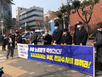 10일 LG트윈타워 노동자가 사측과 몸싸움 중 갈비뼈가 골절된 사건이 발생한 가운데, 노조 및 시민사회단체가 조합원에 대한 폭행이라며 이를 규탄...