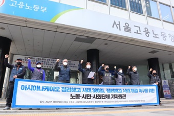 코로나19로 정리해고된 아시아나항공 하청노동자들이 복직을 요구하며 투쟁한 지 300일이 됐다. 300일의 투쟁 기간 천막 농성장은 세 차례 철거...