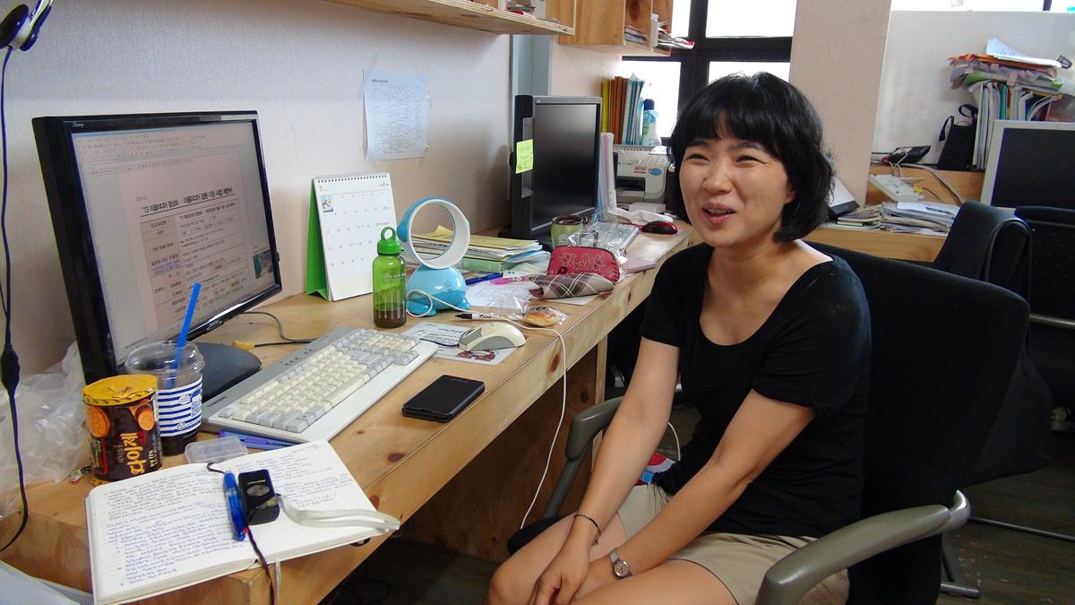 김상정: 난 ‘서당개’다. (웃음) 당시에 큰 애는 세 돌이 안 되었고 둘째는 첫 돌도 안 된 상태였다. 다 알다시피 돌도 안 지난 아기 엄마가 마을에서 뭔가를 하기는 어렵지 않은가. 애 보는 거 말고는. 그런데 마을미디어교육이 있다는 걸 알았고, 그것도 시작된 후에 참관만 해도 되느냐고 물었더니 그러라고 하더라. 그래서 애 업고 가서 참관하다가 너무 재밌어서 열심히 듣게 됐다. 그랬더니 선생님들이, 그러지 말고 정식으로 해라, 교육생이 돼라, 해서 서당개가 서당 안으로 아예 들어간 거다. ㅎㅎ 선생님들과 운영진들이 우리 애기를 위해 없는 돈 쪼개서 베이비시터를 구해주시기까지 했다. 그렇게 얼떨결에 하게 된 거다. ㅎㅎ