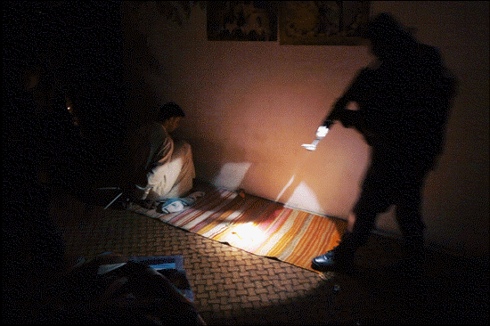 난 무서웠어. 그래서 조용히 몸을 일으켜 문 틈 사이로 밖을 바라봤지. 근데 말야......근데......총을 든 미군이 우리 아빠를 때리고 있지 뭐야. 엄마는 말리고 있고 누나는 울고 있었어. 미군은 아빠를 손가락질 하며 ‘테러리스트, 테러리스트’라고 소리쳤고 아빠는 ‘노, 노’라고 말했어. 하지만 미군은 아빠의 말을 듣는지 마는지 아빠를 무릎 꿇게 하더니 손을 뒷짐 지게 했어. 그러고는 아빠의 손에 하얀 끝을 묶었지.