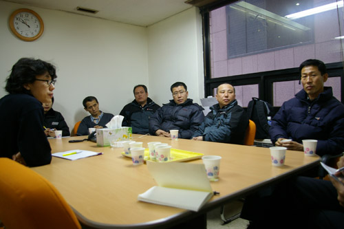 ▲ 정동영 선대본부 사무실을 점거한 비정규직 노동자들 |