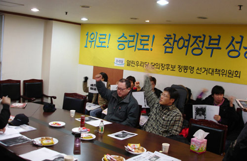 ▲ 김근태 선대본부 사무실을 점거한 후보들 |