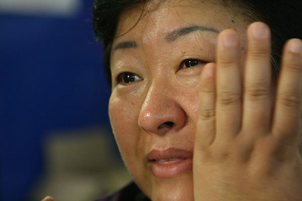 ▲ 김정애 이랜드일반노조 조합원은 기자가 말을 시키자 마자 눈물을 흘렸다. |