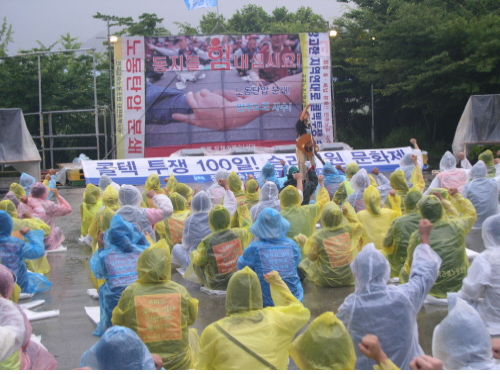 여름 장마비를 맞으며 진행된 문화제는 이인근 콜텍지회장의 개회사로 시작되었다.