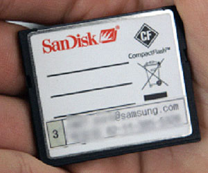 ▲ 기자를 사칭하다 적발된 삼성 직원의 카메라 메모리카드에 삼성 이메일 주소가 찍혀 있다. [출처: 다산인권센터 제공] |