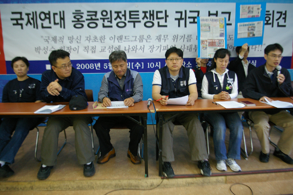 한편, 뉴코아-이랜드일반노조는 오늘(14일) 오전, 기자회견을 갖고 지난 4월 30일부터 5월 7일까지 진행한 홍콩원정투쟁의 성과를 밝혔다. 이들은 기자회견문을 통해 “우리는 회사가 파국으로 치닫는 것을 결코 원하지 않는다”라고 전제하고, “박성수 회장의 오만이 장기파업 사태와 이랜드 그룹 경영 부실의 근본 원인임은 삼척동자도 다 안다”라며 “이랜드 그룹의 실권자인 박성수 회장이 지금이라도 노조 말살 야욕을 버리고 진정성 있게 교섭에 나설 것”을 촉구했다.