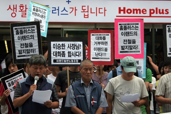 1박 2일 노숙농성 참가자들은 “이승한 홈플러스 사장은 이랜드를 반면교사로 삼아 노사문제 해결을 통해 ‘창의 경영’의 긍정적인 영향을 바란다”며 “대화가 성사되지 않으면 삼성테스코 자본과 비장한 각오로 투쟁에 나설 것”이라고 기자회견문을 통해 결의를 밝혔다.