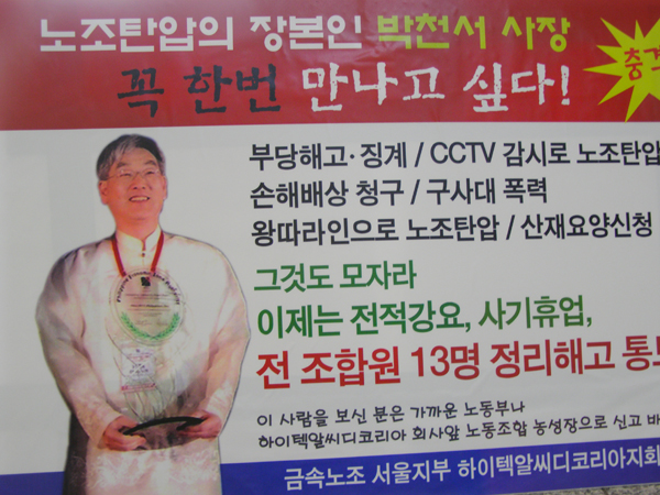 지난 1월 대법원으로부터 부당해고 판결을 받았던 전국금속노동조합 서울지부 하이텍알씨디코리아지회(이하 하이텍 지회) 조합원들이 “판결문의 잉크가 마르기도 전에” 정리해고를 당하기 일보 직전이다.