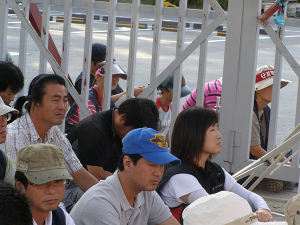 26일에도 조합원들은 힘겹게 오창본사로 들어가야만 했다고 한다. 본사 안 노조 천막을 지키던 4명의 조합원들과 철문 바깥 쪽에서 출근을 요구하는 두 명의 조합원들은 뙤약볕 밑에서 오후 2시가 넘도록 본사 안으로 들어가겠다고 요구했지만, 구사대들은 철문을 막고 이를 거부했다.