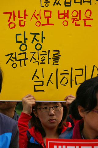 이런 법률 단체의 입장에 해고된 파견직 노동자들은 더욱더 힘을 내고 있는 분위기다. 해고 노동자들은 내일(18일) 저녁 7시, 강남성모병원 비정규직 농성장에서 ‘강남성모병원 비정규직 노동자와 함께 하는 단결과 연대의 밤’을 연다. 이들은 초대장을 통해 “몇 안 되는 인원이 싸우지만 투쟁하는 노동자, 학생, 시민 할 것 없이 날마다 지지방문과 연대가 끊이질 않는다”라며 “늘 감사하고 미안한 마음 뿐이다. 그래서 고마운 분들을 모시고 좀 더 화기애애한 저녁을 만들어 볼까 한다”라고 함께 해줄 것을 제안했다.