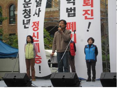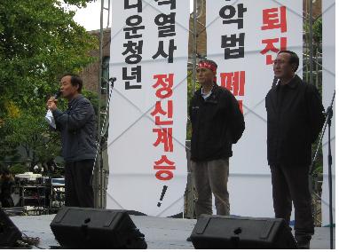 연대 발언을 하러 나온 민노당 홍희덕 의원, 민주노총 허영구 부위원장, 진보신당 노회찬 대표. 오랜 옛날부터 꿈꾸어 온 ‘노동자 농민의 정치세력화’는 언제쯤 알찬 결실을 손에 쥘 수 있게 될까? 각각 두 진보 정당과 민주노총의 지도부라 해도 좋을 분들의 얼굴이 무척이나 어두워 보였다. 지금 우리는 어쩌면 21세기 초 진보운동사에서 가장 어두운 부분을 쓰고 있는 것인지도 모른다.