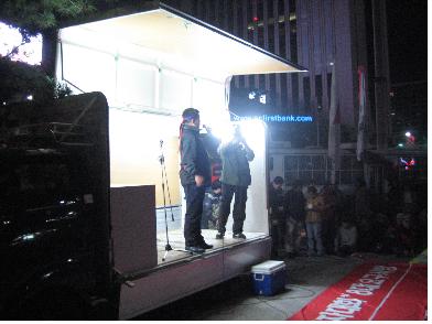 시를 낭송하고 있는 송경동 시인. 한국작가회의 자유실천협의회와 기륭 공대위에서 활동하신다고 한다. 한 번 뵙고 술이나 한 잔 나누고 싶은데 아직까지 그럴 기회가 없었다.