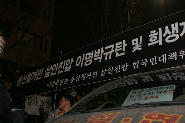 한편 "진상규명 책임자처벌"등의 구호를 외치며 명동까지 행진을 벌인 노동사회단체 회원들과 대학생 등 2백여 명은 명동성당 입구 명동아바타몰 앞에서 시위를 벌이는 중이다. 경찰은 롯데백화점 방향 길목을 봉쇄하고 이들을 막고 있다. 이 곳에서 깃발을 든 시민들은 "이명박은 살인마다", "철거민을 살려내라", "살인정권 퇴진하라"는 구호를 외쳤다.