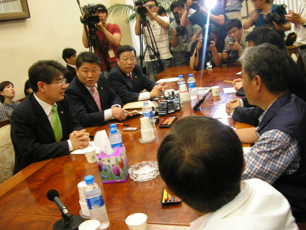 회의 직전 임성규 민주노총 위원장은 “민주당이고 한나라당이고 협상에 대해 공개적인 것 외에 말하지 않기로 해놓고 언론에 다 공개해 협상 분위기를 흐려 놨다”며 “정치인들은 낮과 밤이 다르나”고 비난했다. 임성규 위원장은 “법에 문제가 있다는 걸 다 알면서 법을 고쳐야지 왜 유예하자고 하냐”며 유예안 수용 불가 입장을 분명히 했다.