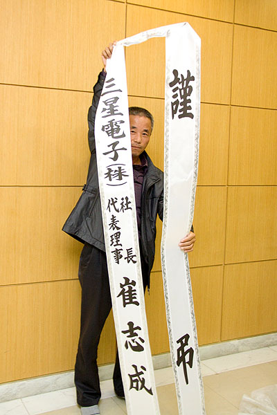 삼성측은 조화을 보냈지만 삼성반도체 공장에서 일하다 백혈병을 얻어 사망한 고 황유미 씨의 어버지 황상기 씨는 조화에 적힌 ‘삼성’을 뜯어 버렸다.