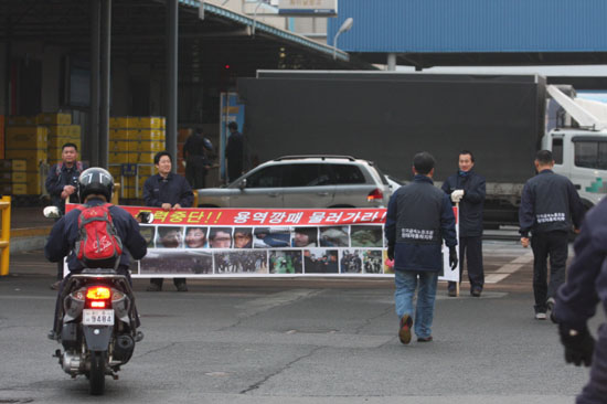현대차지부 김희환, 홍영출 조합원은 현대차의 폭력을 규탄하고, 비정규직 노동자들의 승리를 염원하며 108배를 올렸다. 한기가 느껴지는 추운 날씨에도 그들의 이마에는 땀이 흘렀다. 그 땀방울 하나 하나에 비정규직 투쟁 승리의 염원이 알알이 맺혔다. 그 뒤에는 김광식 전 현대차노조 위원장이 "폭력을 중단하라"는 피켓을 들고 섰고, 정규직 노동자들은 "비정규직이 죽느냐 사느냐, 우리 정규직 마음에 달려있습니다"란 문구의 피켓을 들었다.