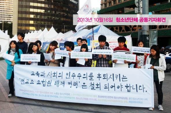 반면, 청소년들은 공개적으로 전교조 지지선언을 했다. 심지어 그들은 여러 언론이나 단체들에서 사용하는 ‘해임교사 탈퇴 시정요구’와 같은 말들이 아니라 ‘조합원 배제 명령’이라는 언어로 지금의 전교조를 지지했다. 지금의 쟁점에서 논의되는 해임교사 9명은 상대적으로 더 학생과 연대해서 운동한 교사들이다. 영화 <두사부일체>의 배경이 된 상문고등학교에서 사학비리에 맞서 싸운 교사라던가 일제고사 반대, 교사시국선언 조직 등을 이유로 해임된 교사들이기 때문이다. 이러한 교사들을 노동조합에서 제외한다는 것은 전교조가 사학비리, 일제고사, 교사시국선언 등의 사회적 의제들로부터 발을 거두어들이는 것. 이는 곧 학생들과 연대하는 폭이 가늘어지는 것을 의미한다는 걸 청소년들은 정확히 알고 있다. 또한 ‘조합원 배제 명령’을 철회해야 한다고 주장하는 청소년들은 누구와 연대해야 하는지를 알고 자신들이 누구의 편인지를 명확히 하고 있다.