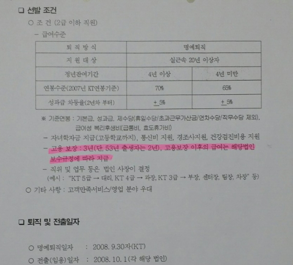 ▲ 2008년 KT의 분사 당시 선발 조건 [출처: 뉴스민] |