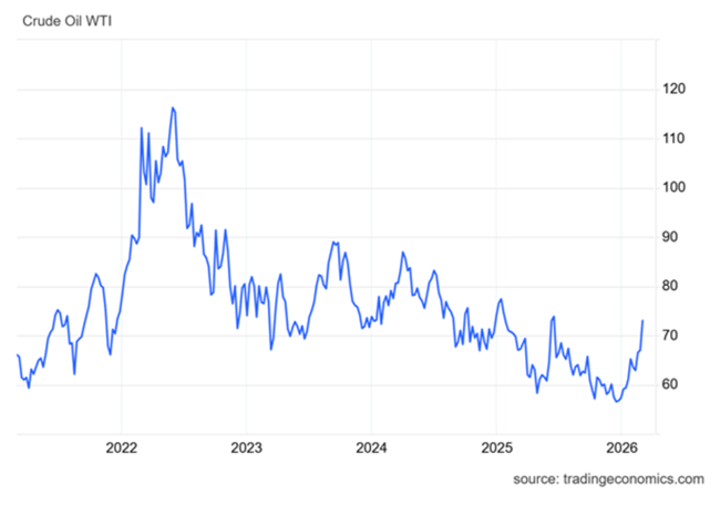 오늘(3월 2유가는 거의 9% 상승해 배럴당 약 73달러에 근접했다이는 8개월여 만에 가장 높은 수준이다미국과 이스라엘의 합동 공습이 이란을 타격하면서 중동 전역의 긴장이 급격히 고조되었기 때문이다전 세계 석유 수송량의 약 5분의 1과 상당한 규모의 천연가스를 처리하는 핵심 요충지인 좁은 호르무즈 해협(Strait of Hormuz)이 현재 차단되고 있는 것으로 보인다테헤란은 해협이 여전히 열려 있다고 주장한다해운 회사들은 선박 항로를 우회하고 있고보험 회사들은 보험료를 대폭 인상하고 있다.