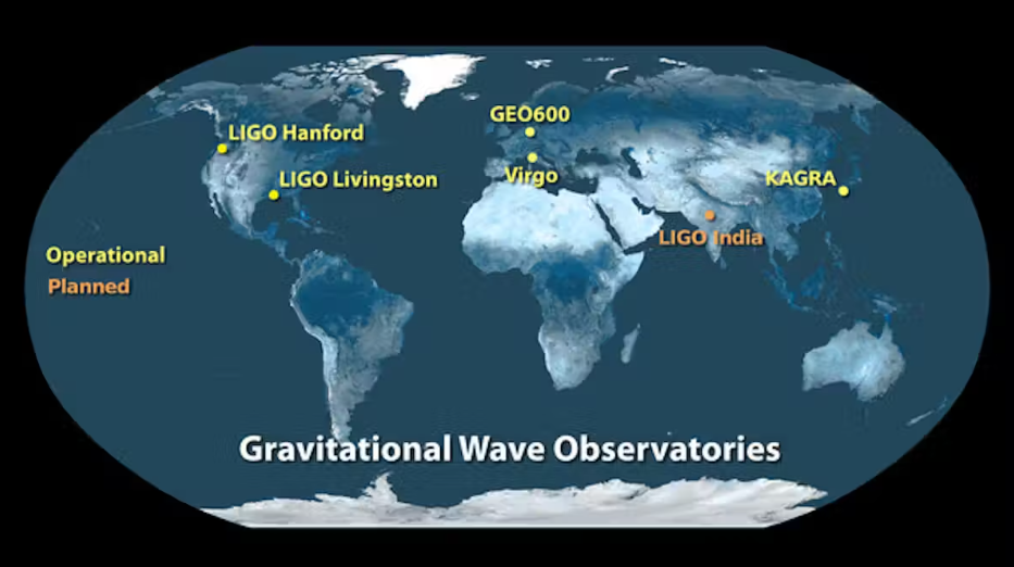 중력파를 검출하려면 거리를 극도로 정밀하게 측정해야 한다. LIGO, Virgo, KAGRA 협력단은 총 네 개의 중력파 관측소를 운영하고 있다. 미국에는 두 개의 LIGO 관측소가 있고, 이탈리아에는 Virgo 관측소, 일본에는 KAGRA 관측소가 있다.
