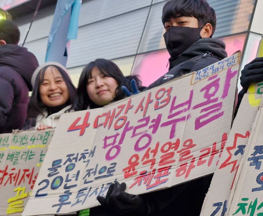 “설악산, 지리산, 4대강 생명 다 죽이고 자본만 배불리는 양당 체제를 끝장내자”, “퇴진 이후 세상은 온 생명 민주주의! 죽임의 외주화를 멈춰라!” 퇴진과 새로운 민주주의는 함께 가야 한다. 기후 위기, 전쟁 위기, 금융위기에서 우리의 삶을 지키는 길이다.