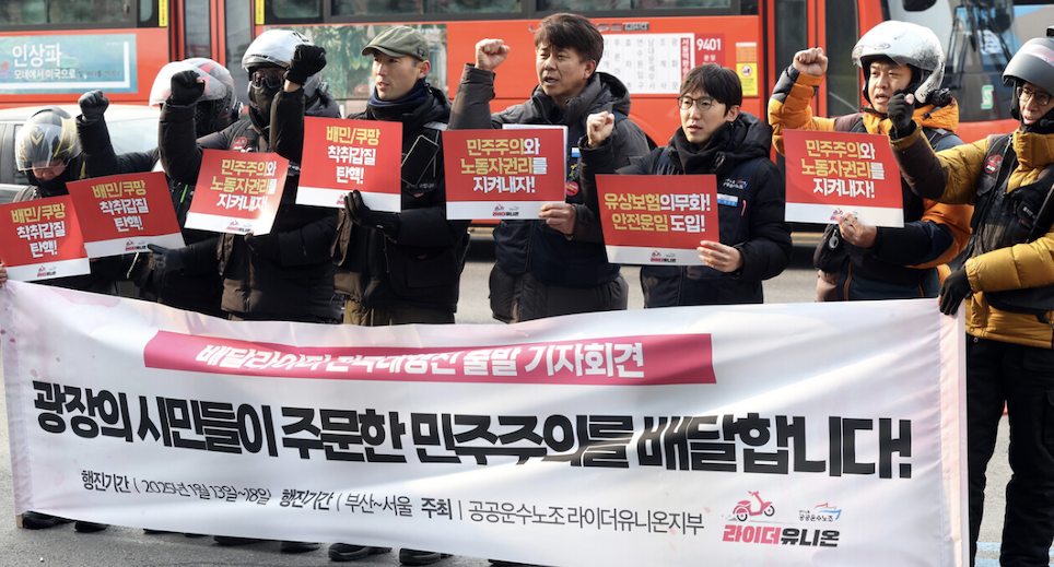 라이더유니온의 전국대행진도 널리 알려졌다. 지난 화요일, 라이더유니온 소속 노동자들은 창원과 부산에서 행진을 시작해 울산·대구·구미·대전·청주·수원을 거쳐 서울까지 달려왔다.