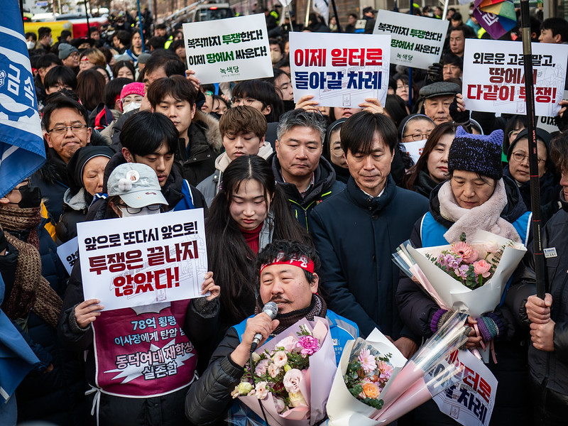 고 지부장은 농성 해제 직후 7차 노사교섭에 직접 참여했고, 현재는 녹색병원으로 이송된 것으로 전해졌다. 세종호텔지부는 이날 기자회견에서 “이제 땅에서 함께 싸운다”면서, “함께 일터로 돌아가기 위한 싸움을 멈추지 않을 것”이라는 입장을 밝혔다.